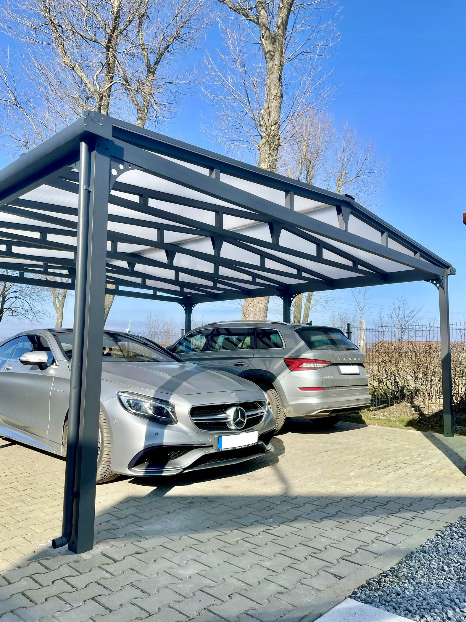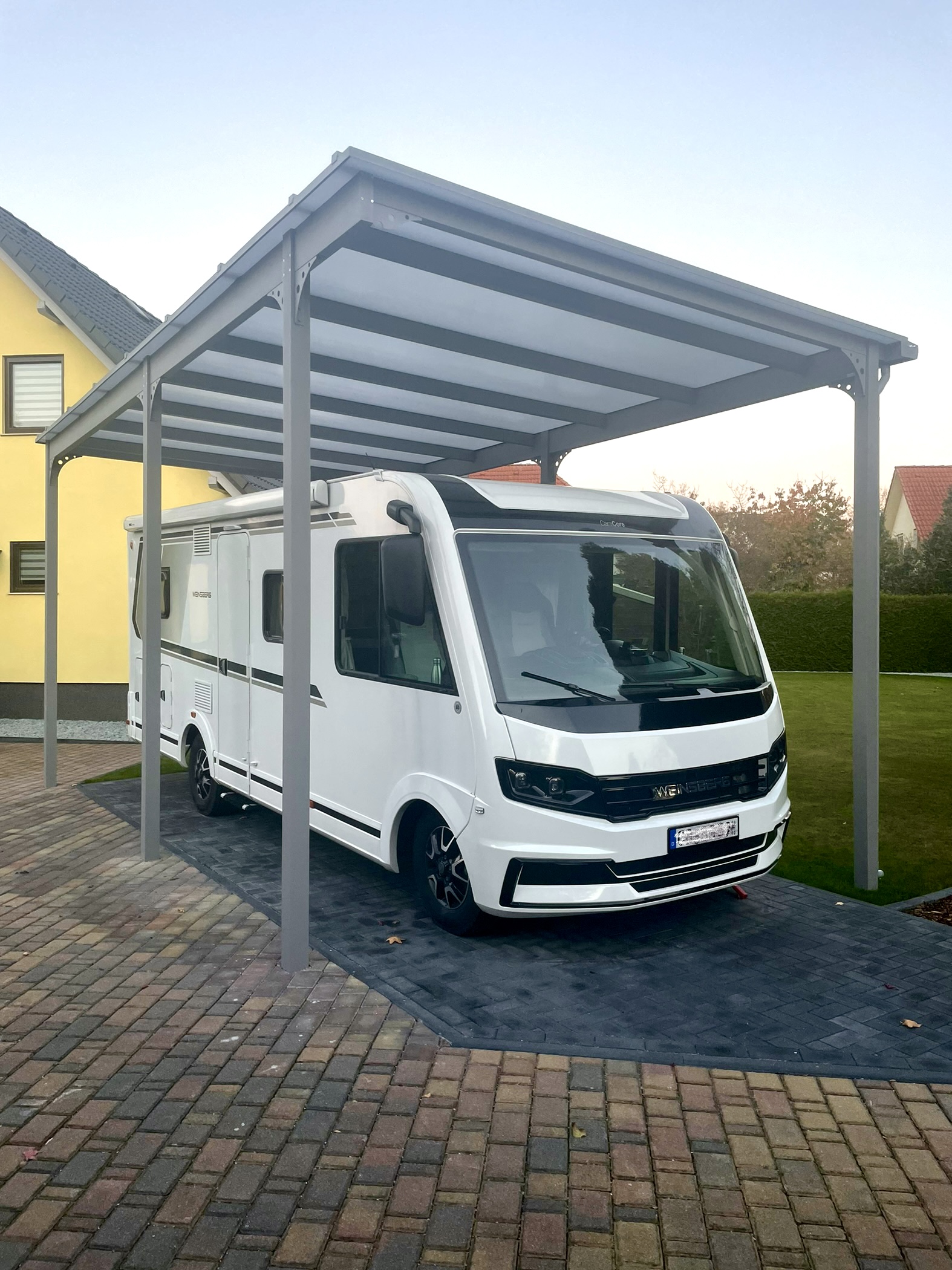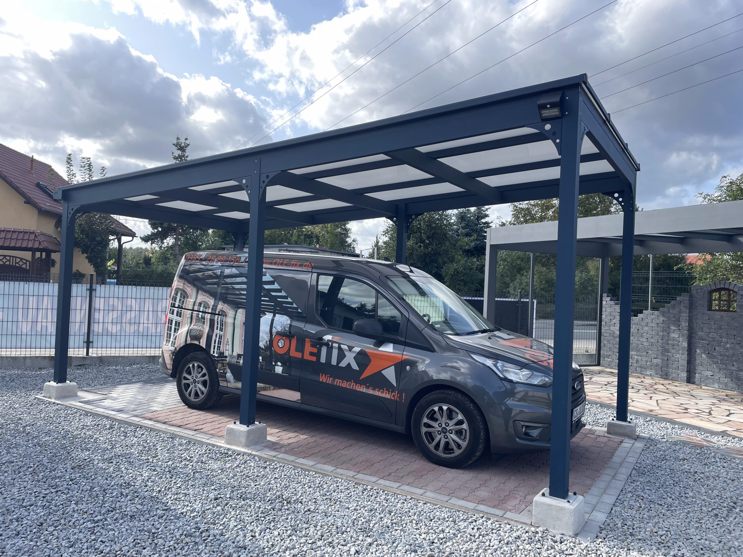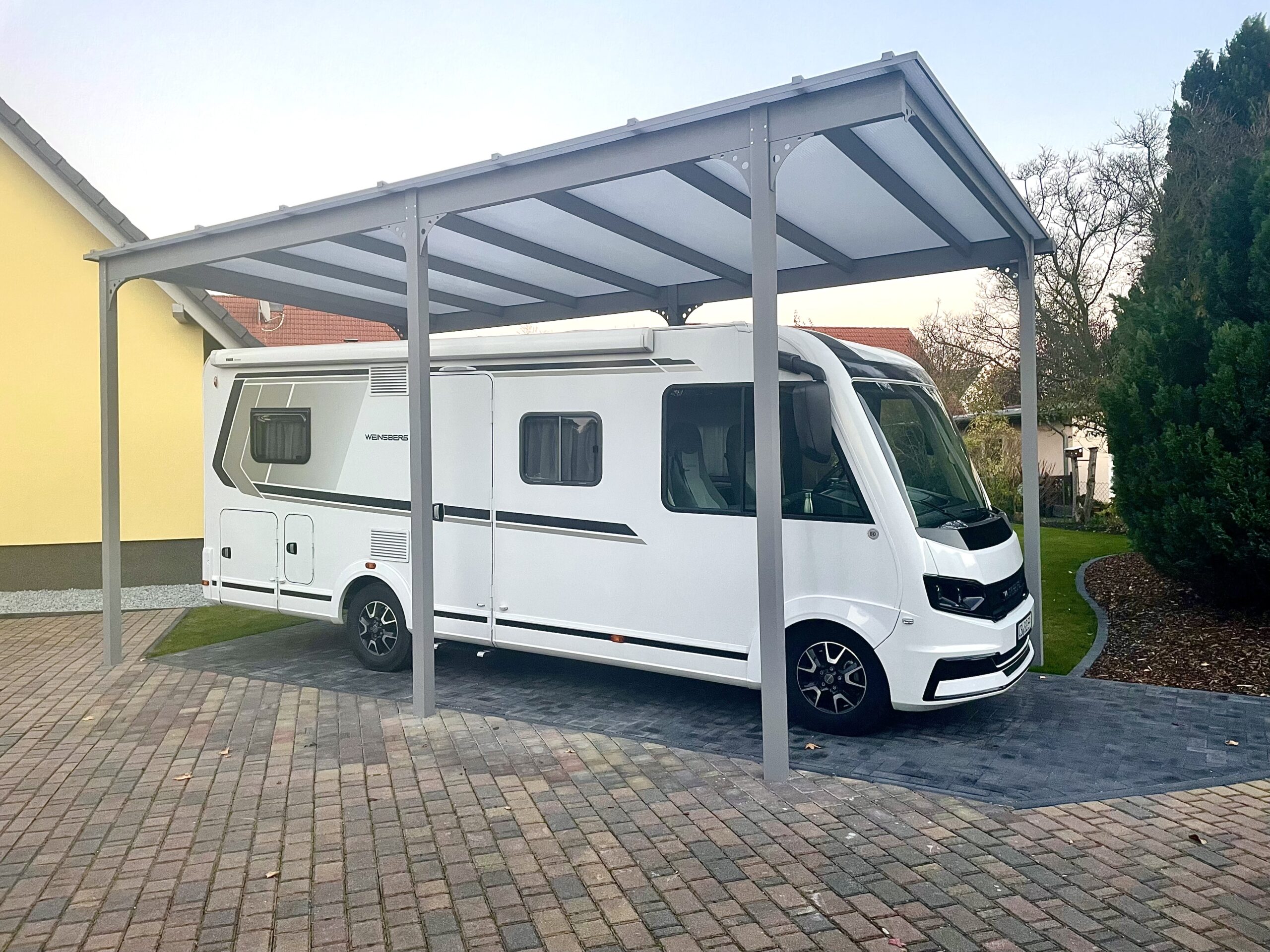 Die robuste Bauweise sorgt dafür, dass deine Fahrzeuge und Eingangsbereiche dauerhaft vor Regen, Schnee, UV-Strahlung und Wind geschützt sind – zuverlässig und ohne Kompromisse.