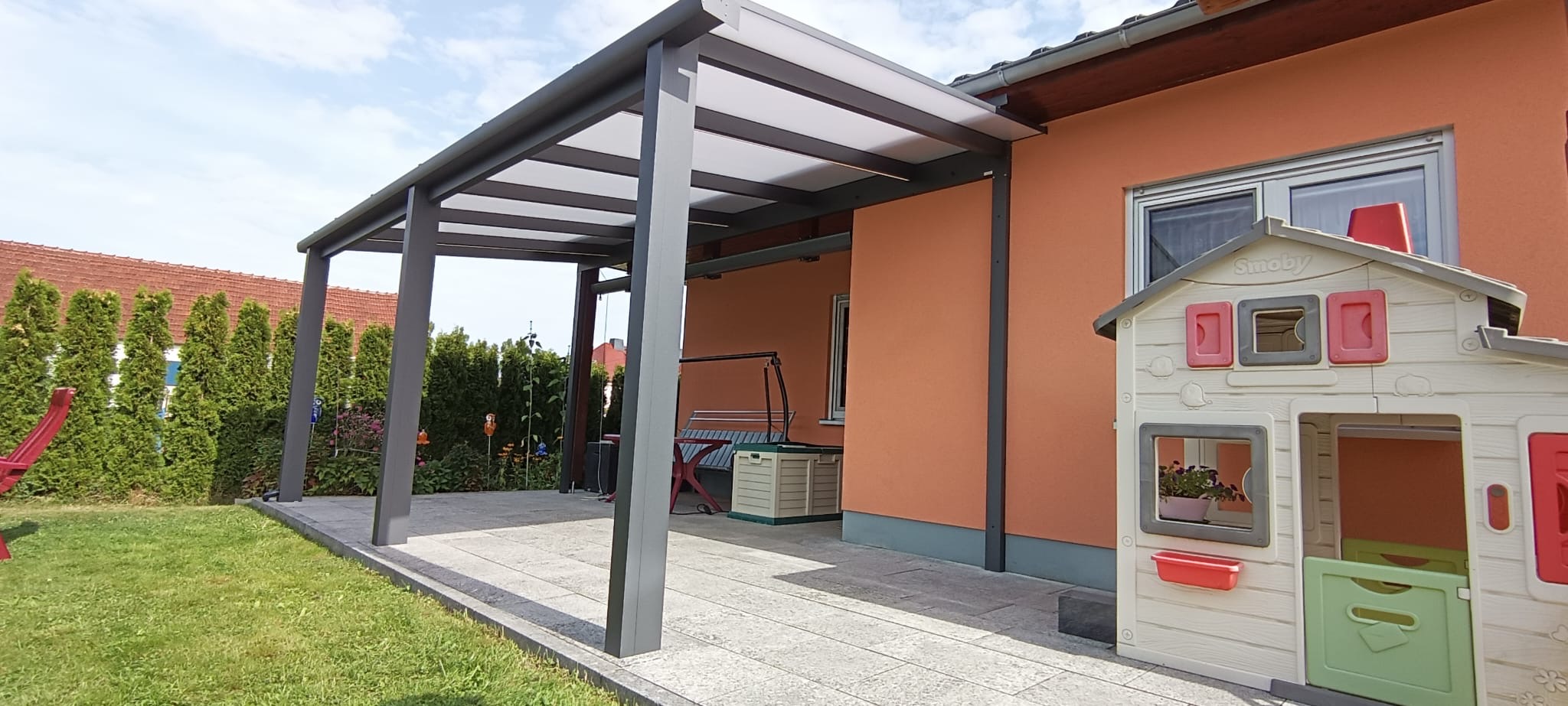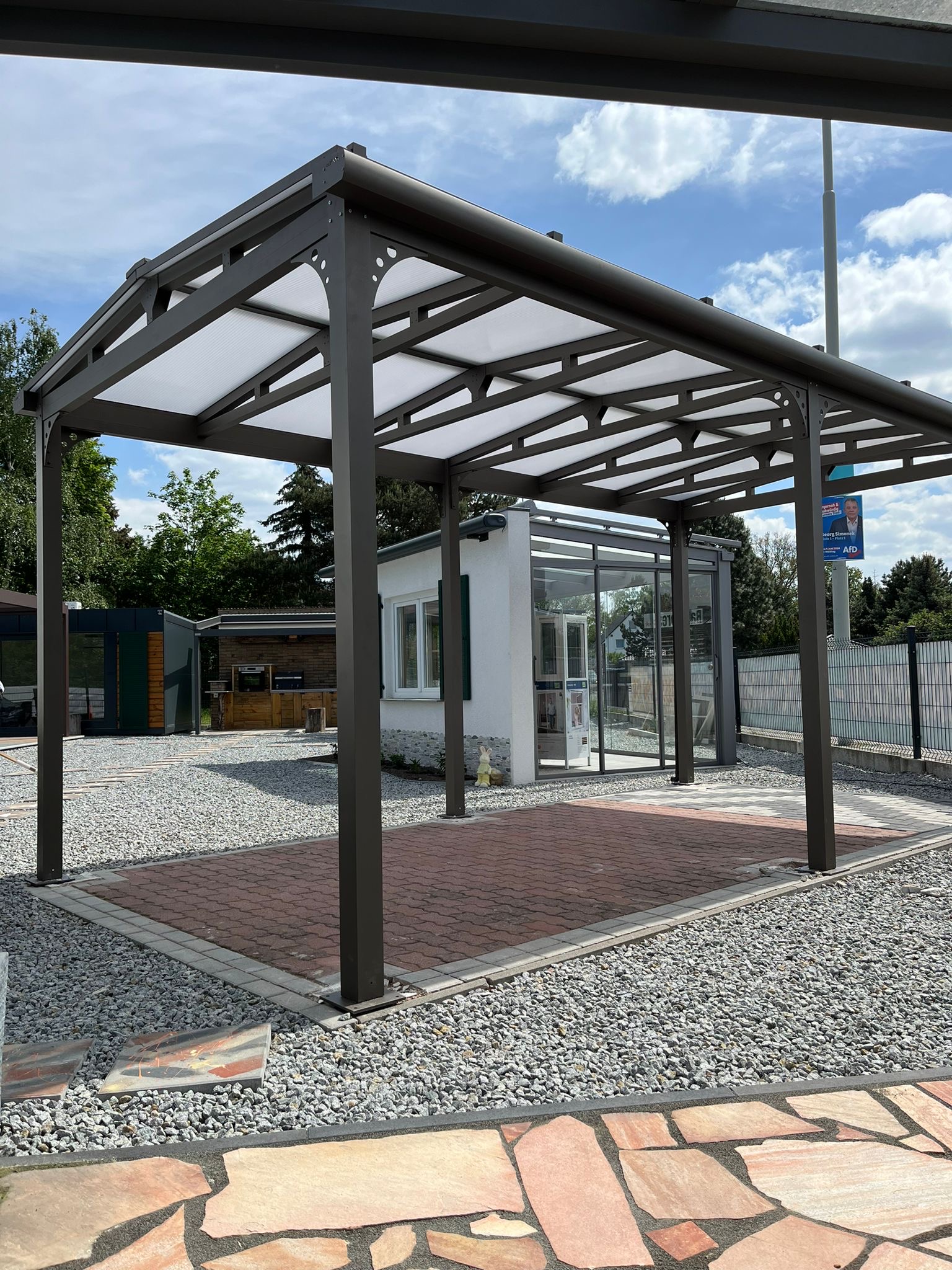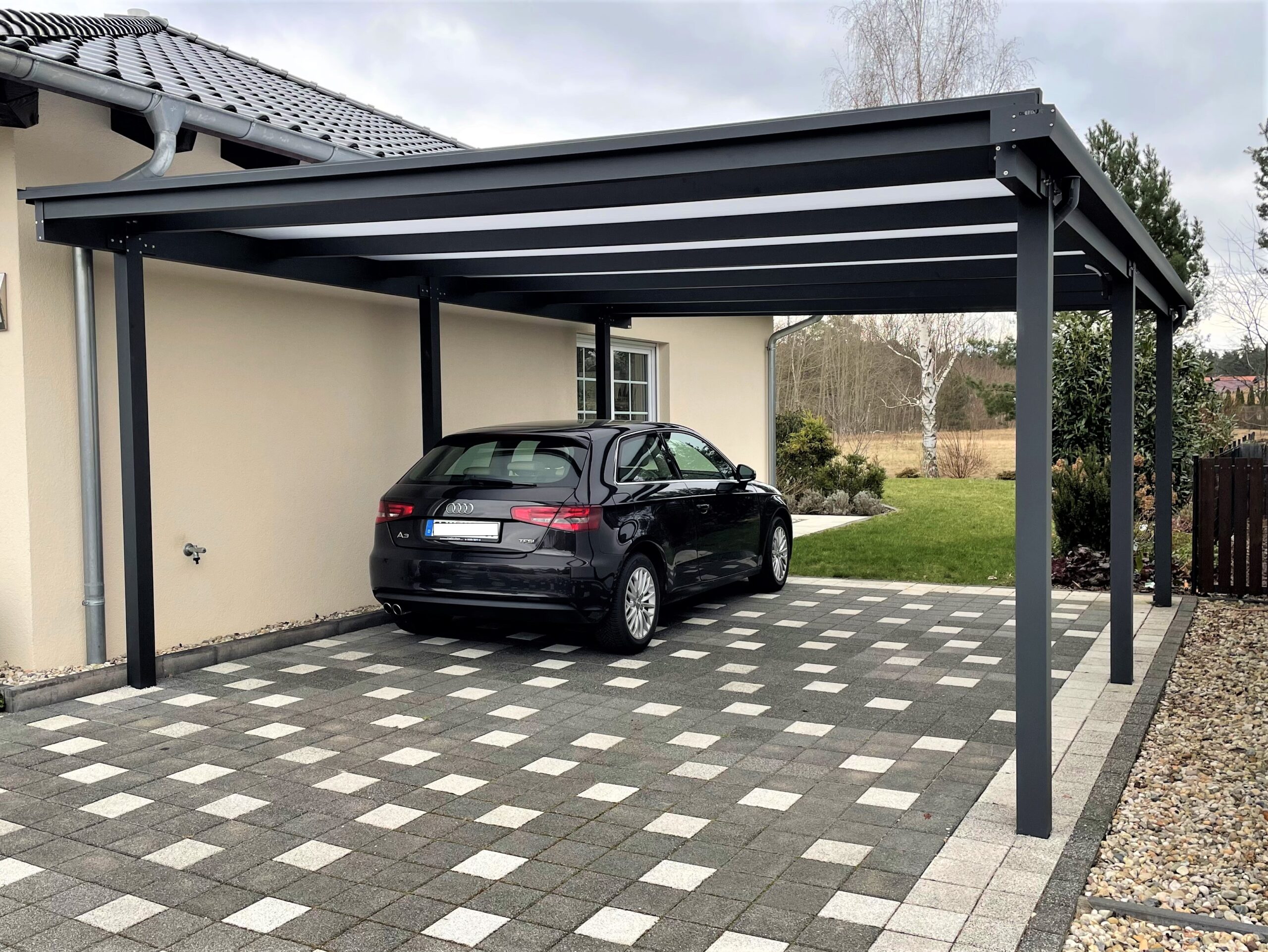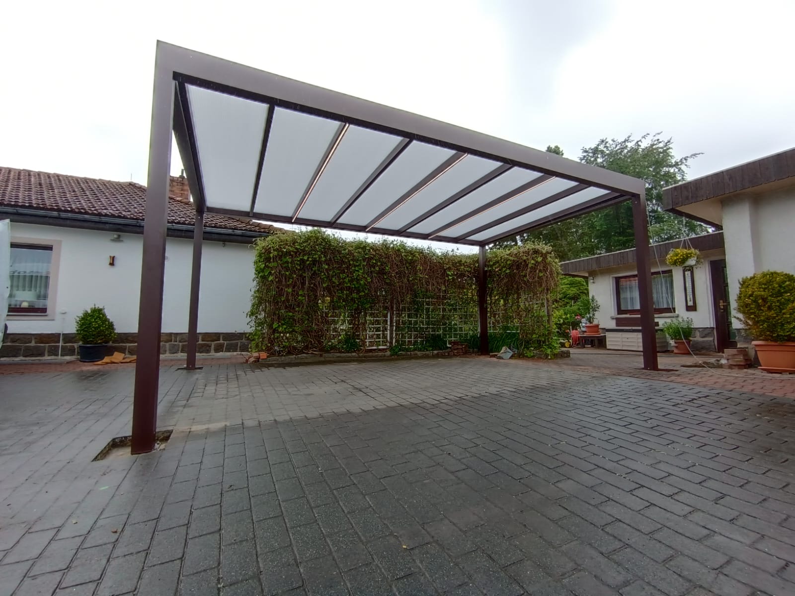 Die robuste Bauweise sorgt dafür, dass deine Fahrzeuge und Eingangsbereiche dauerhaft vor Regen, Schnee, UV-Strahlung und Wind geschützt sind – zuverlässig und ohne Kompromisse.