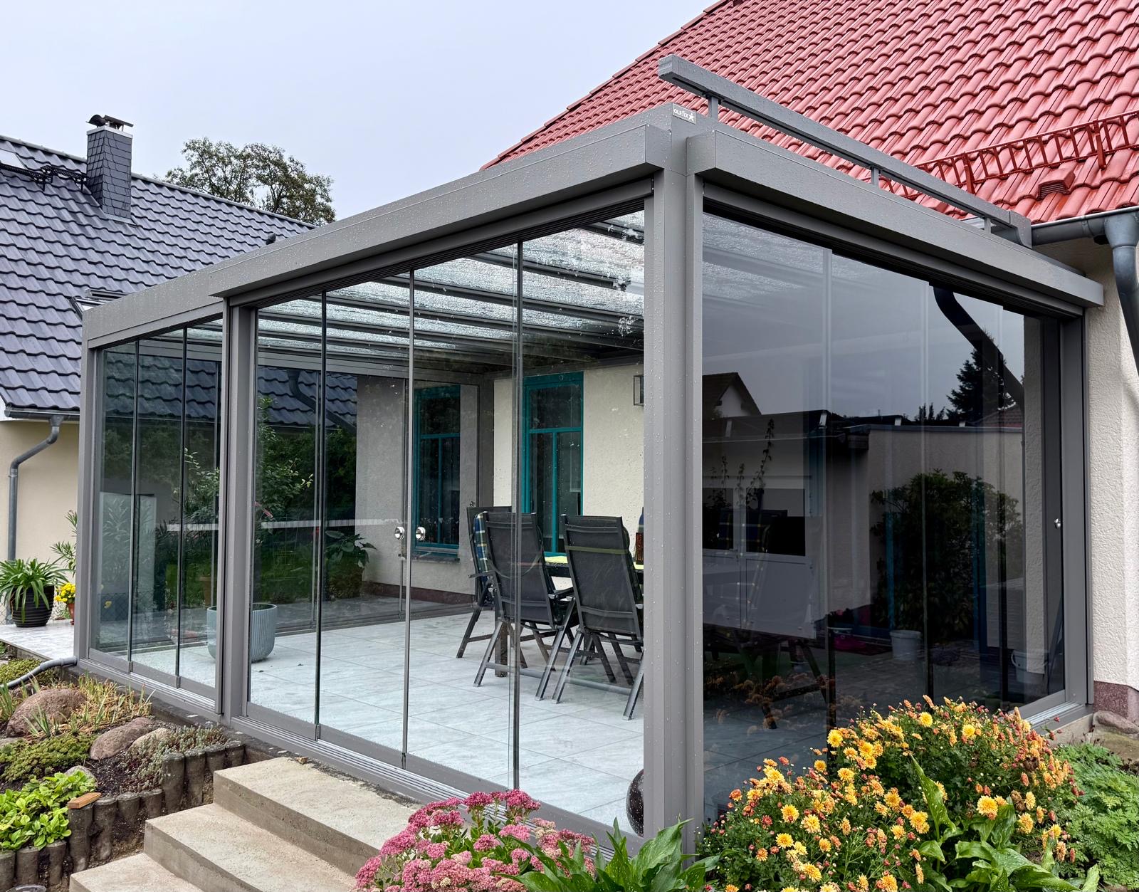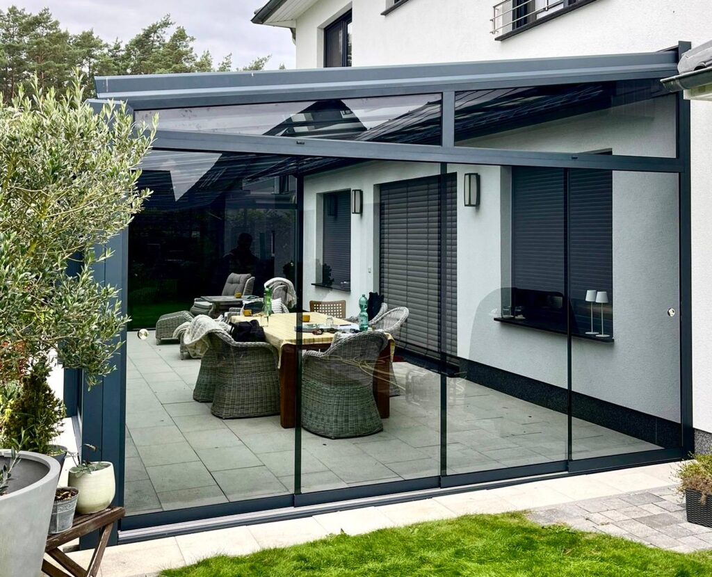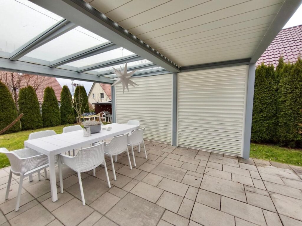 Unsere Konstruktionen sind witterungsbeständig, schützen vor Regen, Wind und Sonne und ermöglichen die Nutzung deiner Terrasse oder deines Sommergartens zu jeder Jahreszeit.
