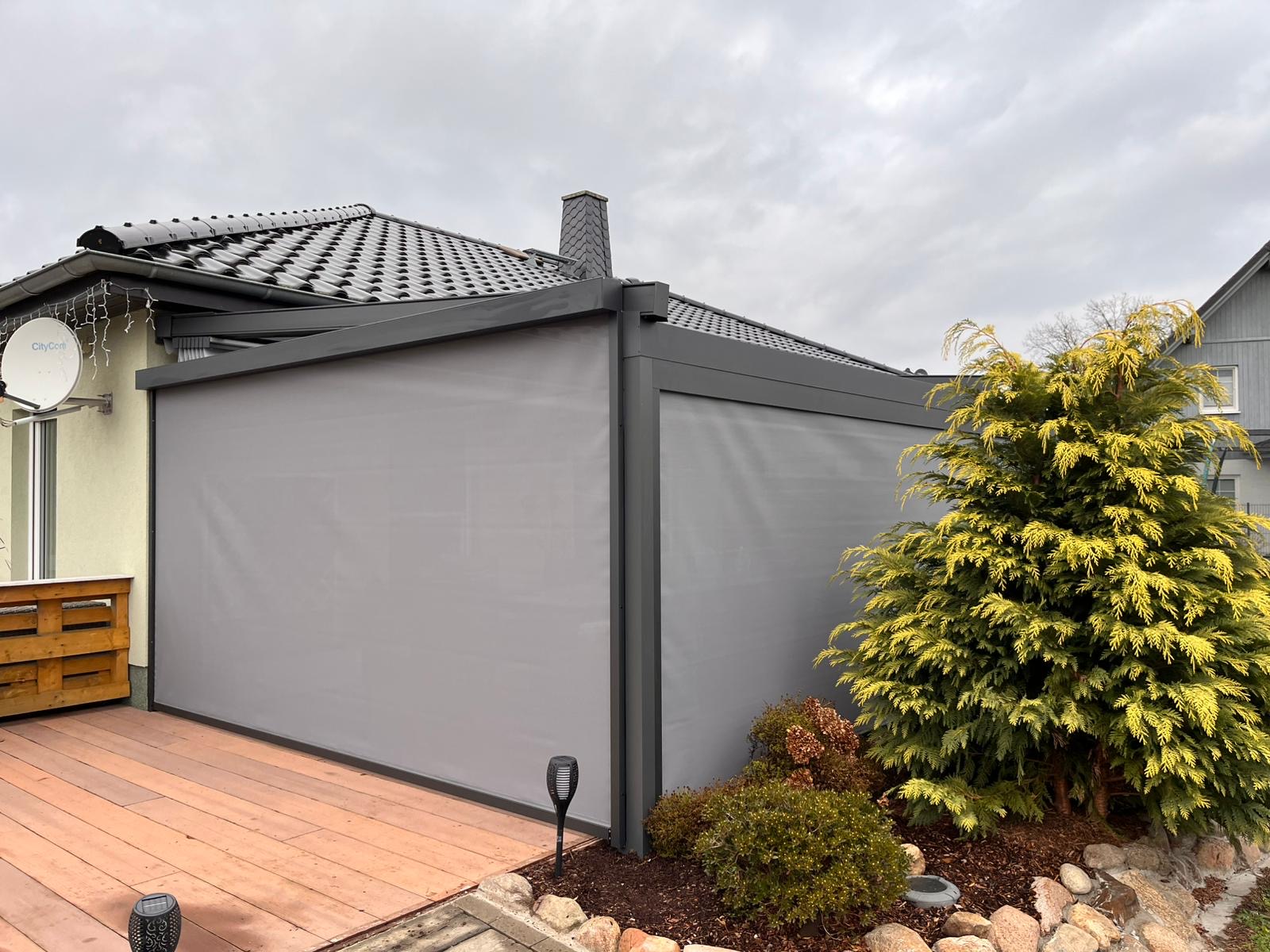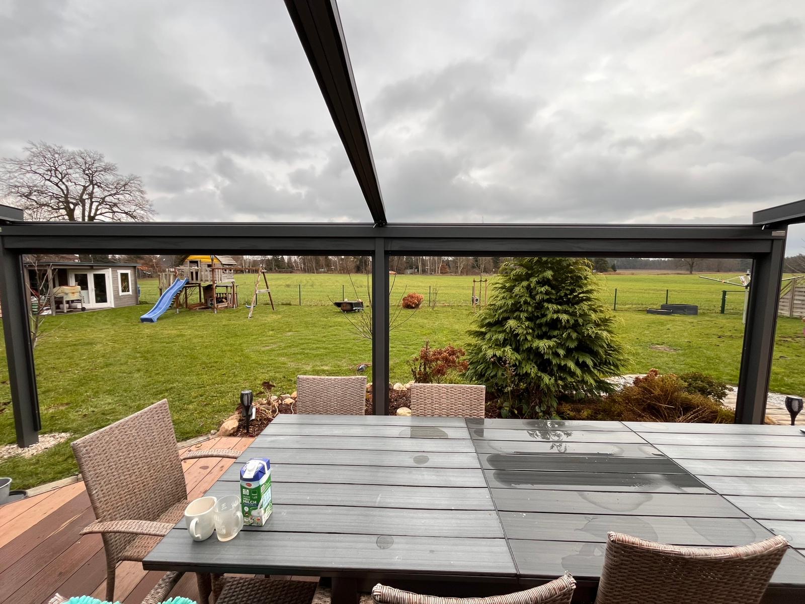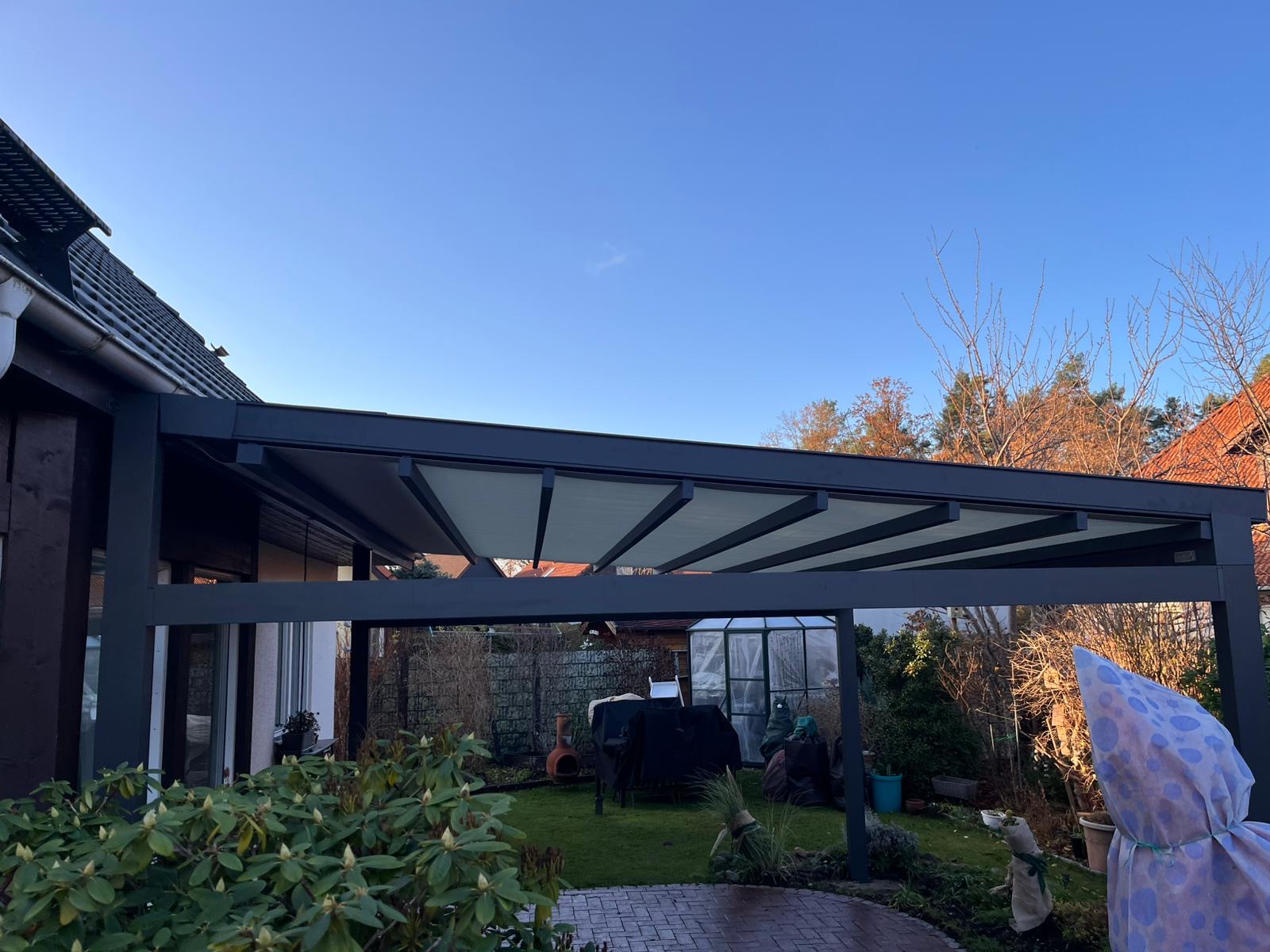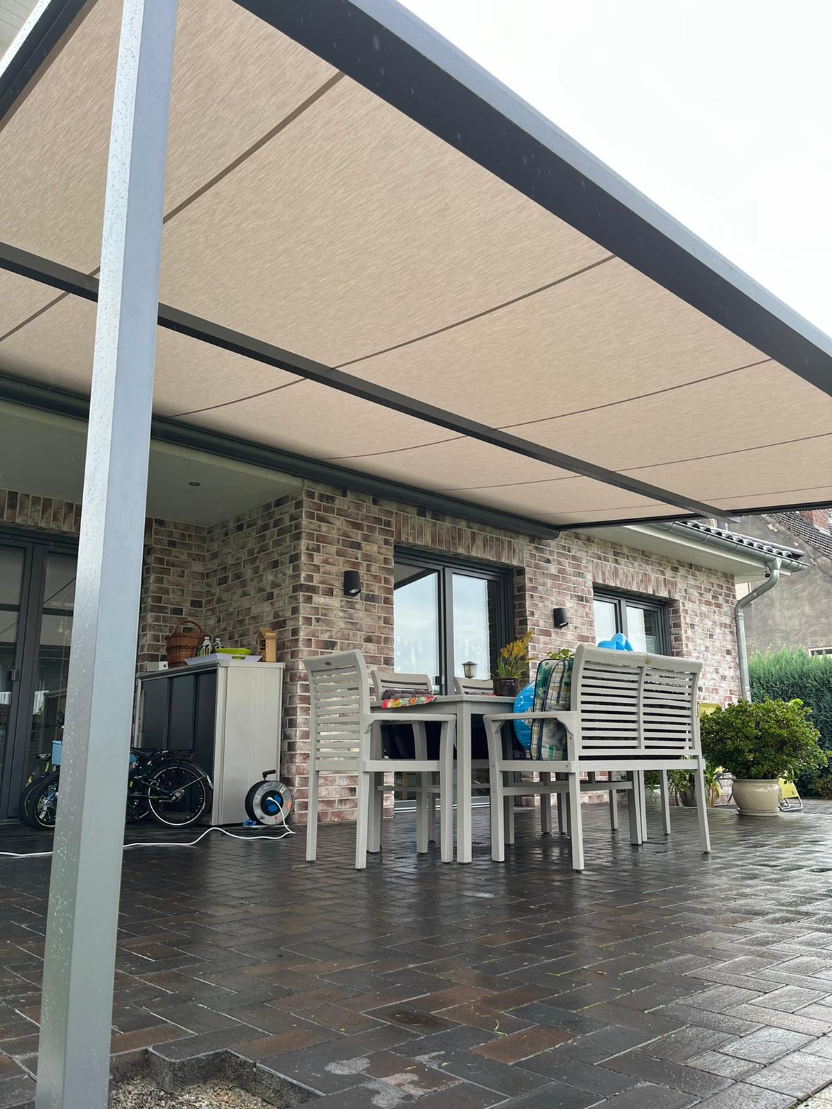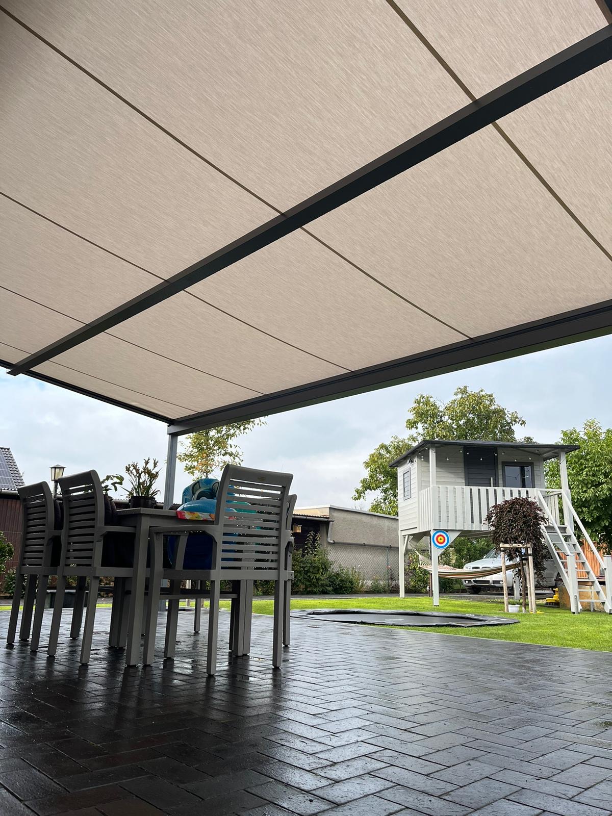 Hochwertige Materialien schützen deine Pergola zuverlässig vor Regen, Sonne und Wind und sorgen für maximale Langlebigkeit.