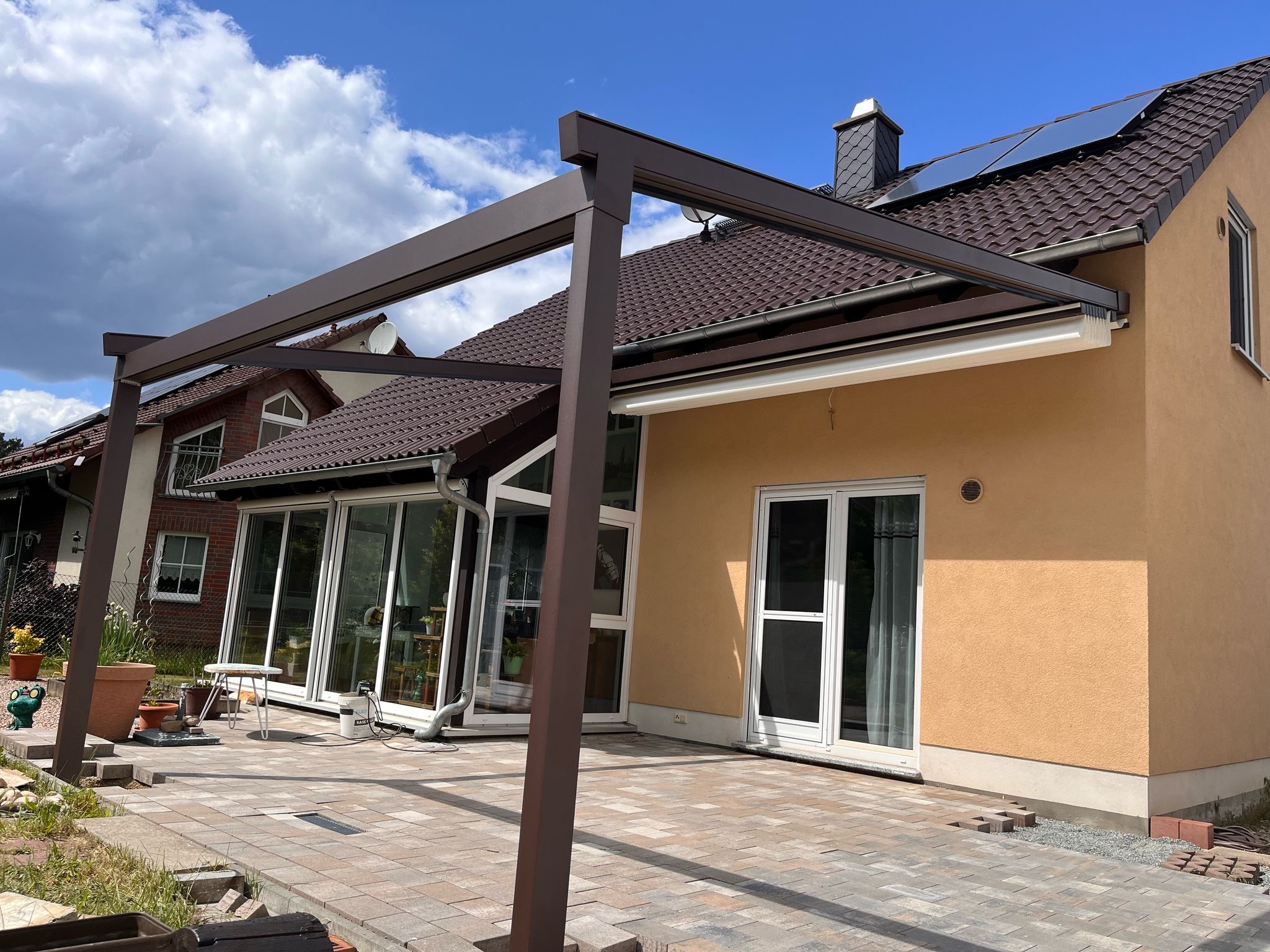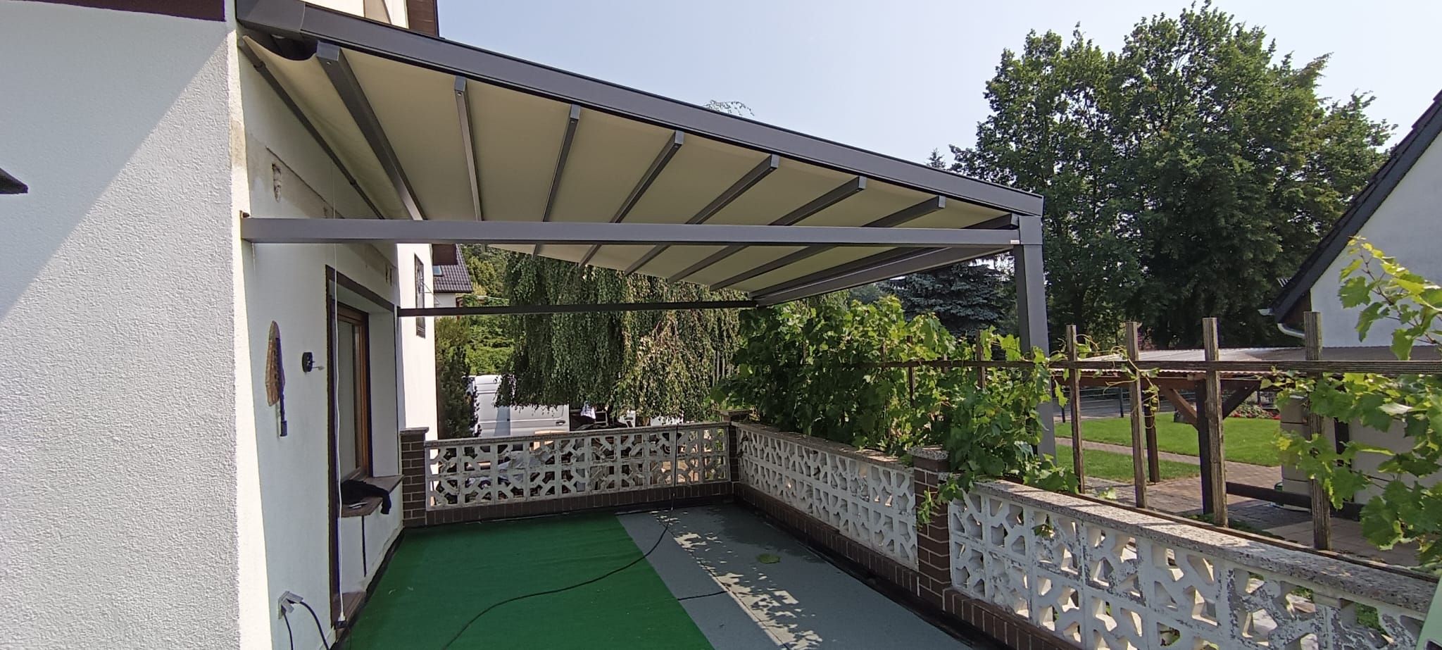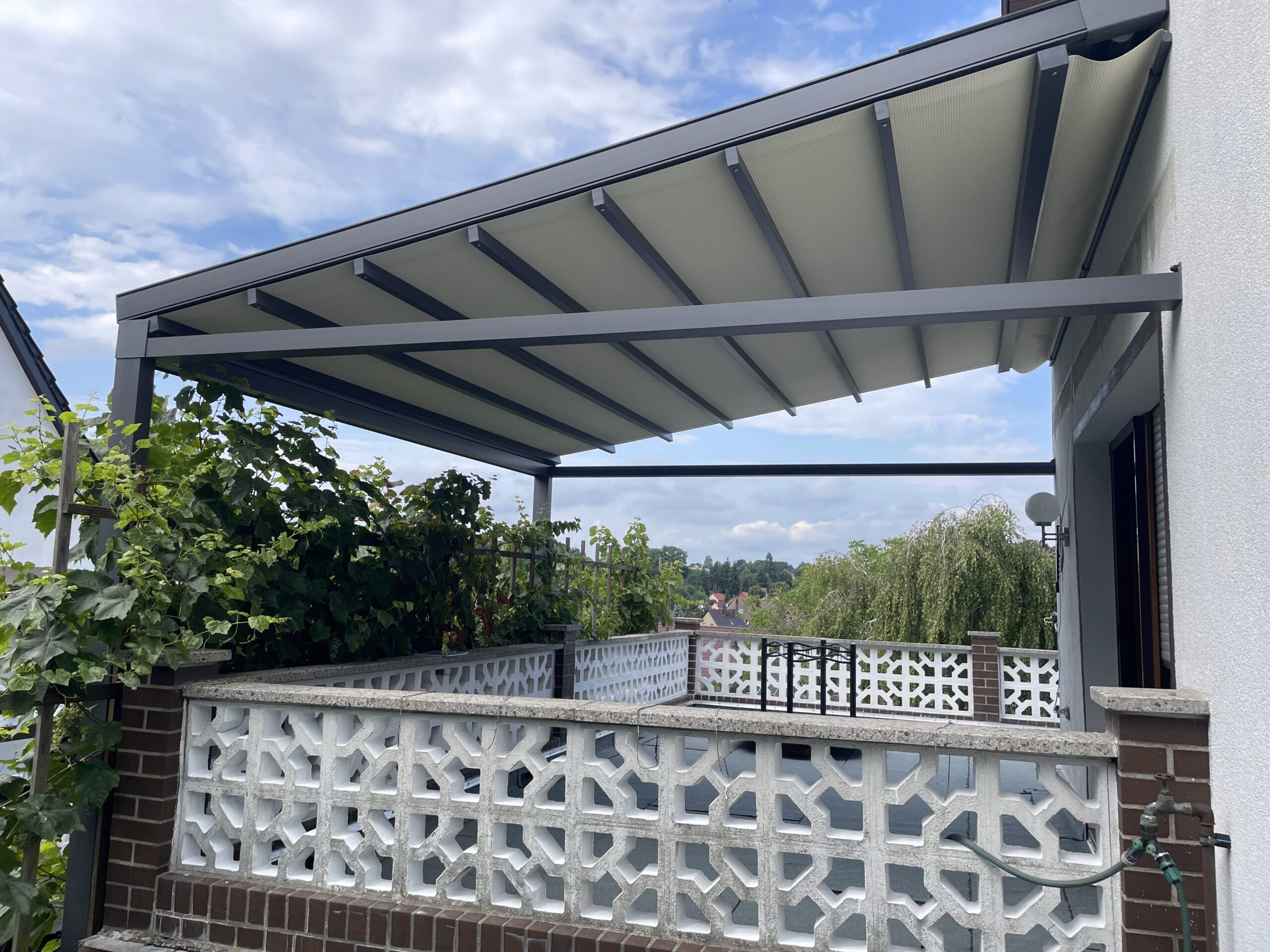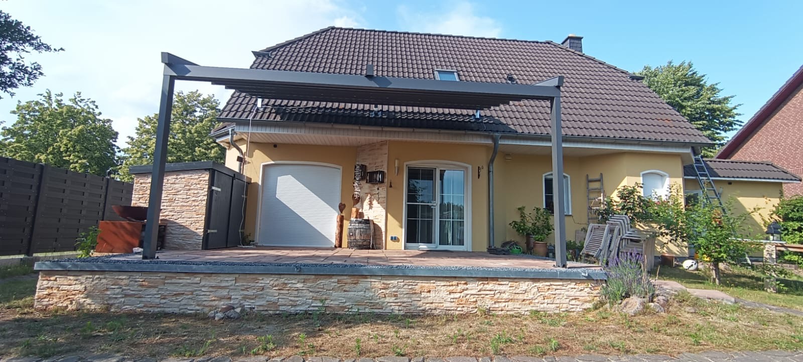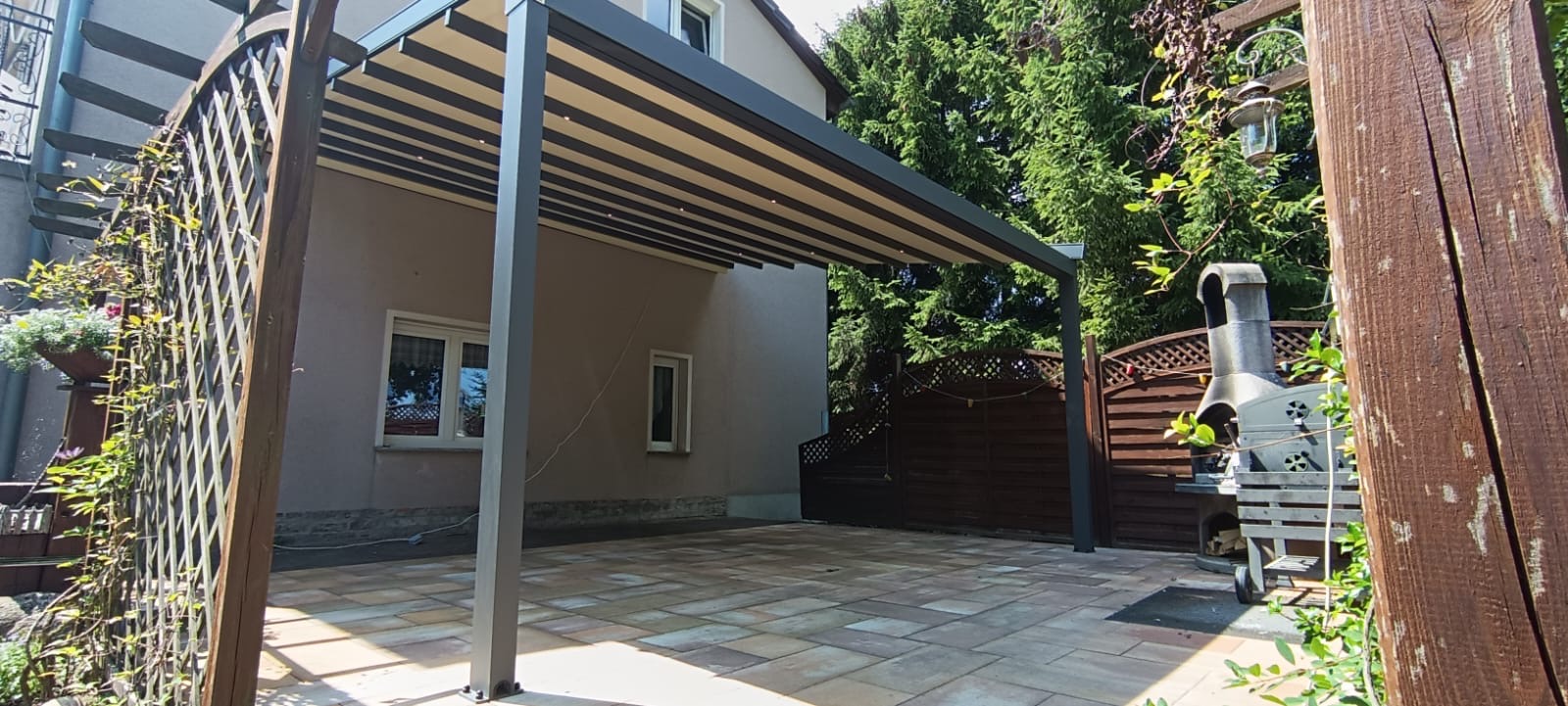 Hochwertige Materialien schützen deine Pergola zuverlässig vor Regen, Sonne und Wind und sorgen für maximale Langlebigkeit.