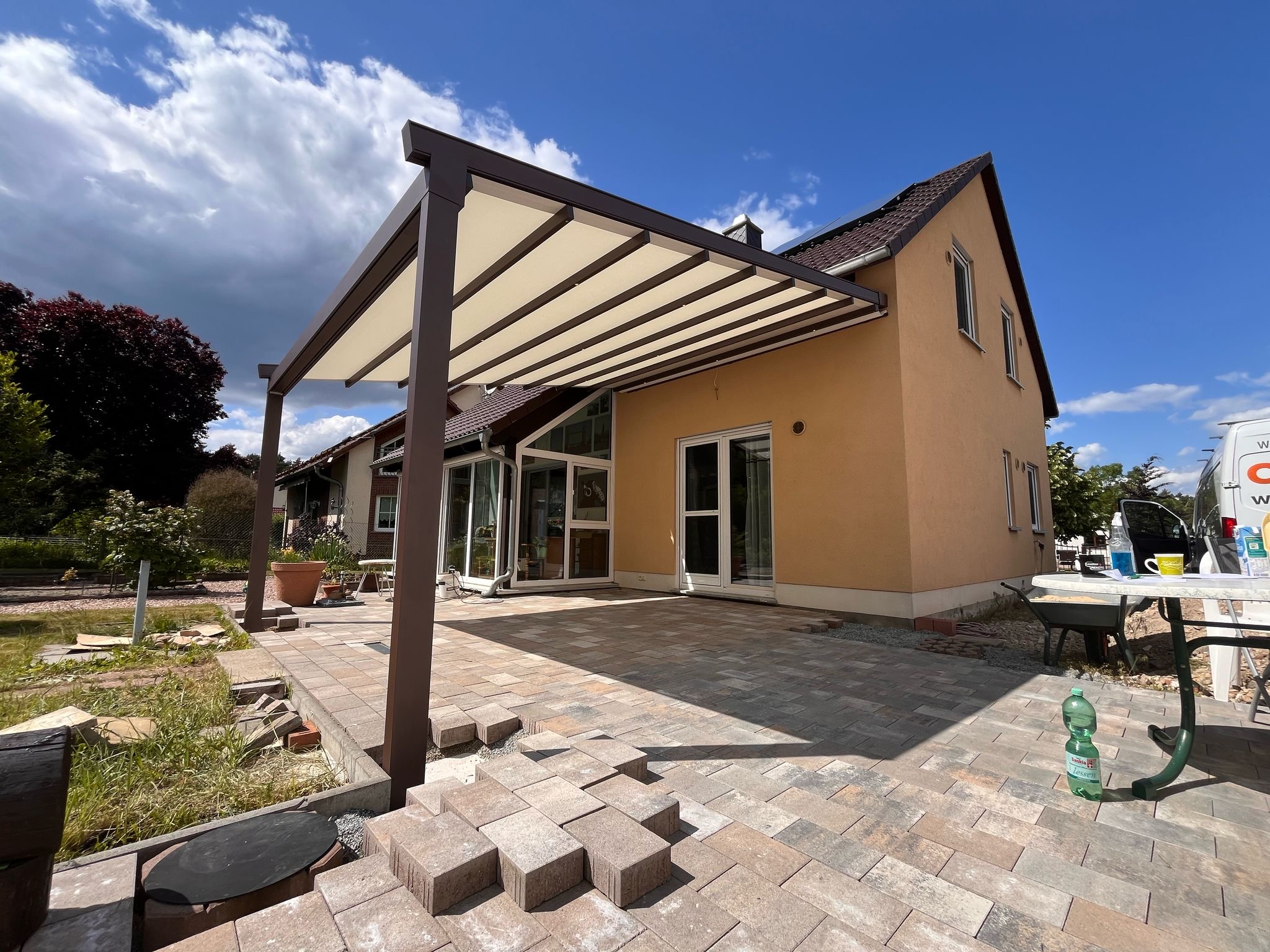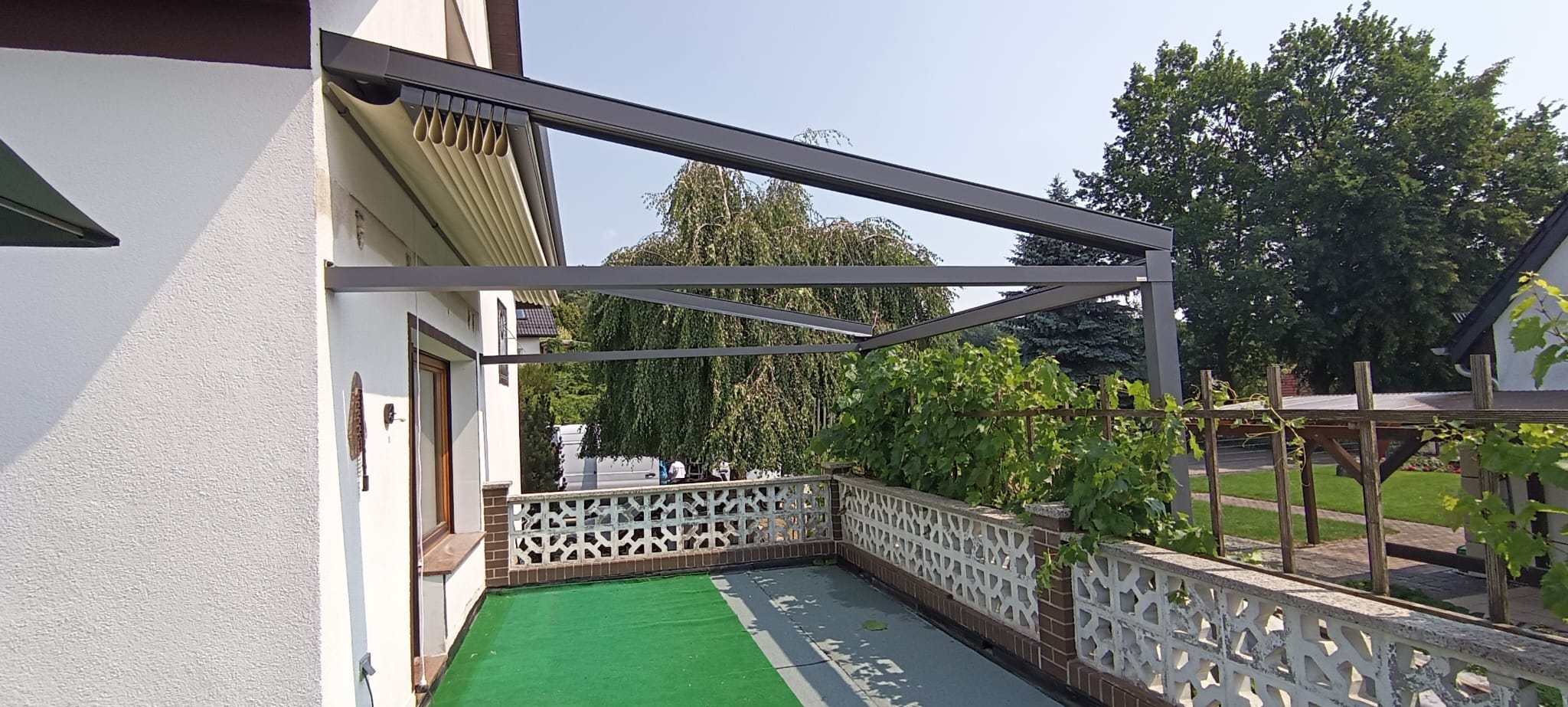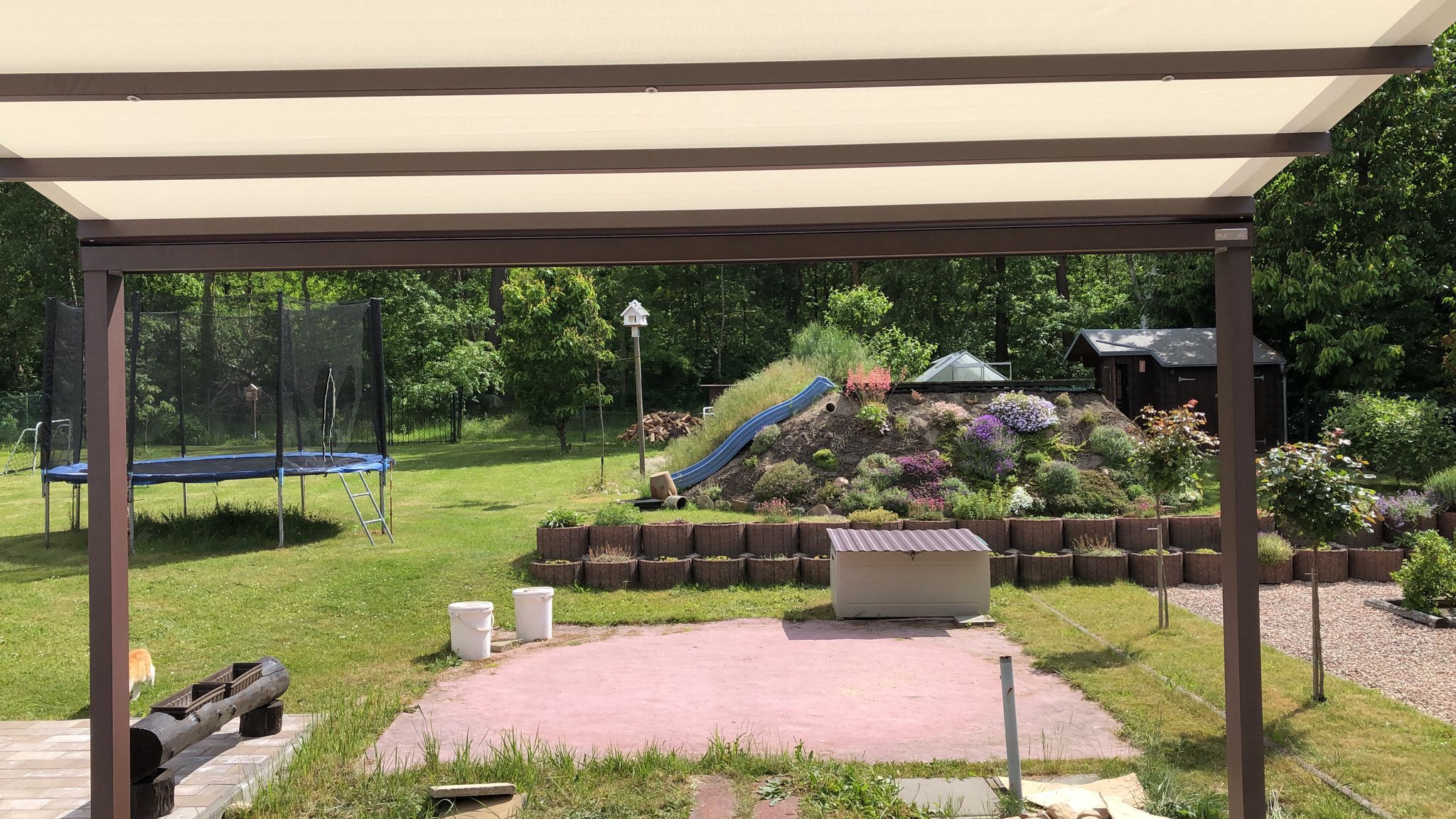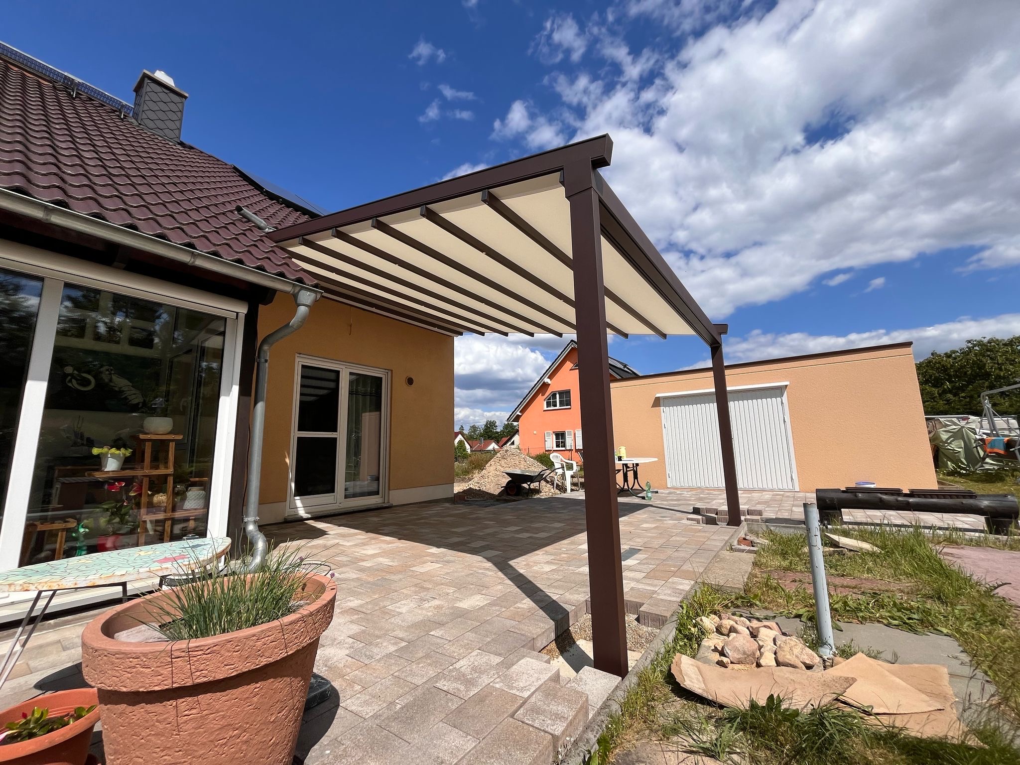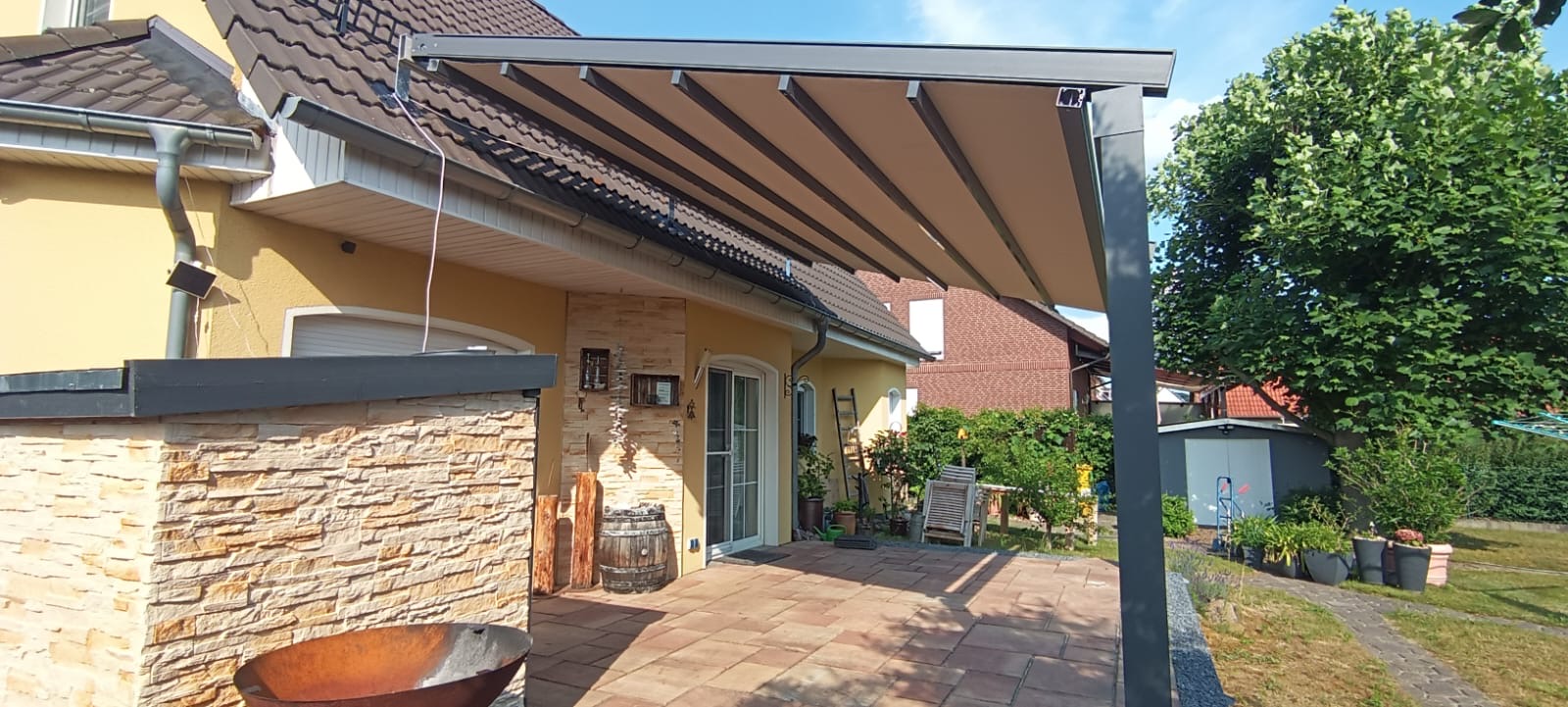 Hochwertige Materialien schützen deine Pergola zuverlässig vor Regen, Sonne und Wind und sorgen für maximale Langlebigkeit.