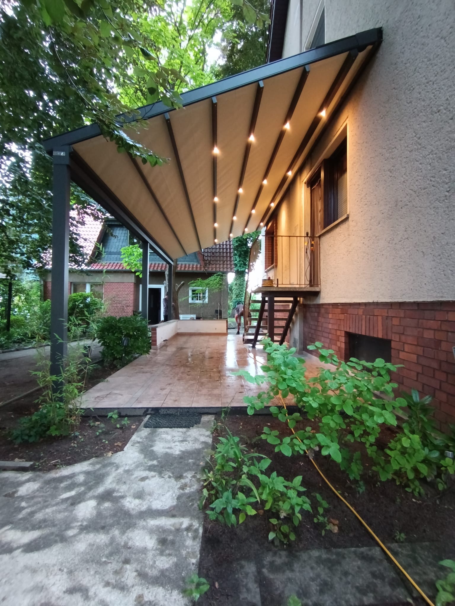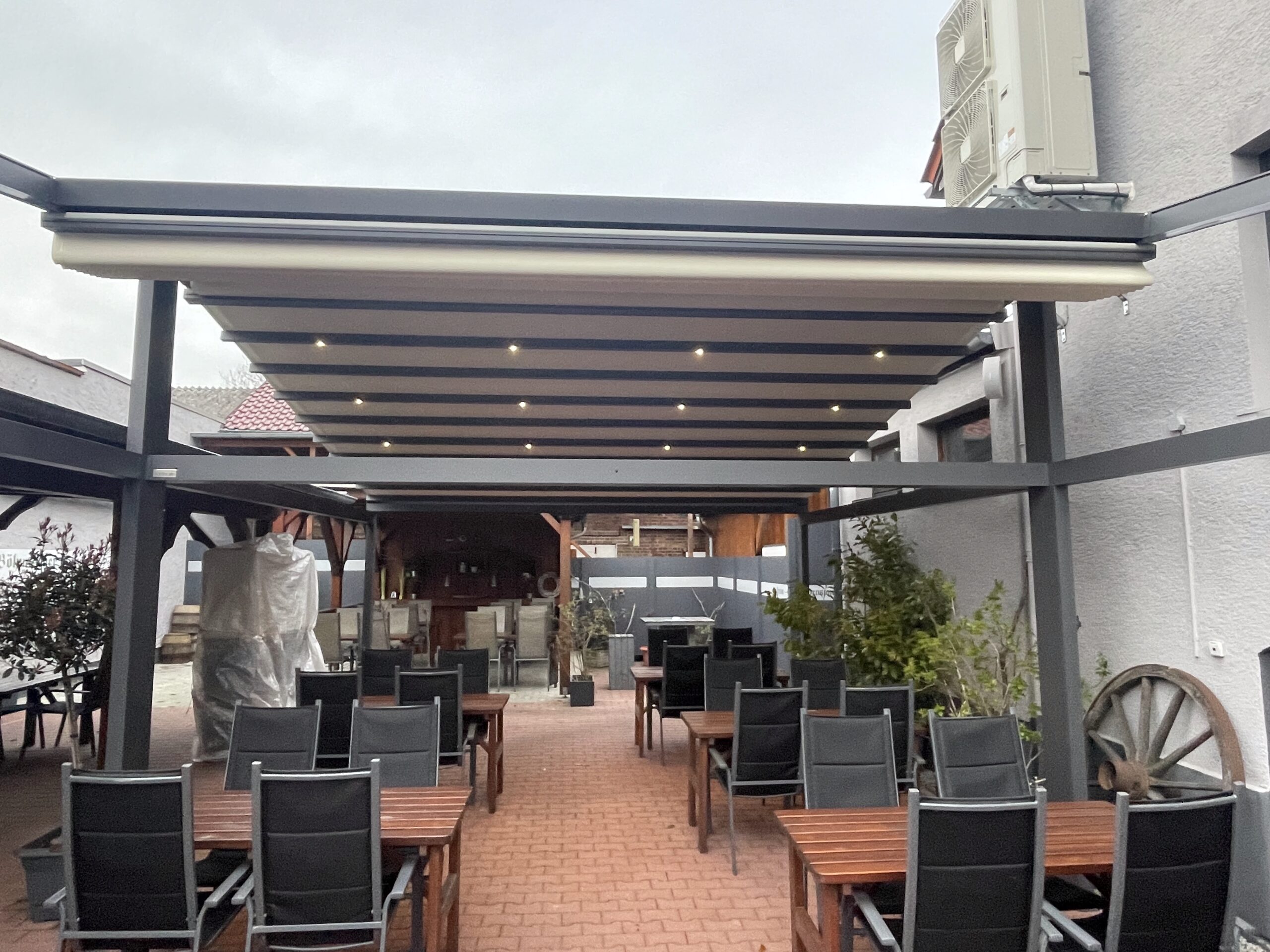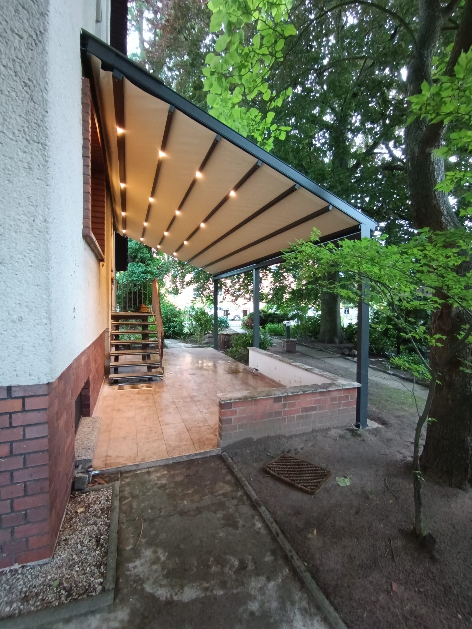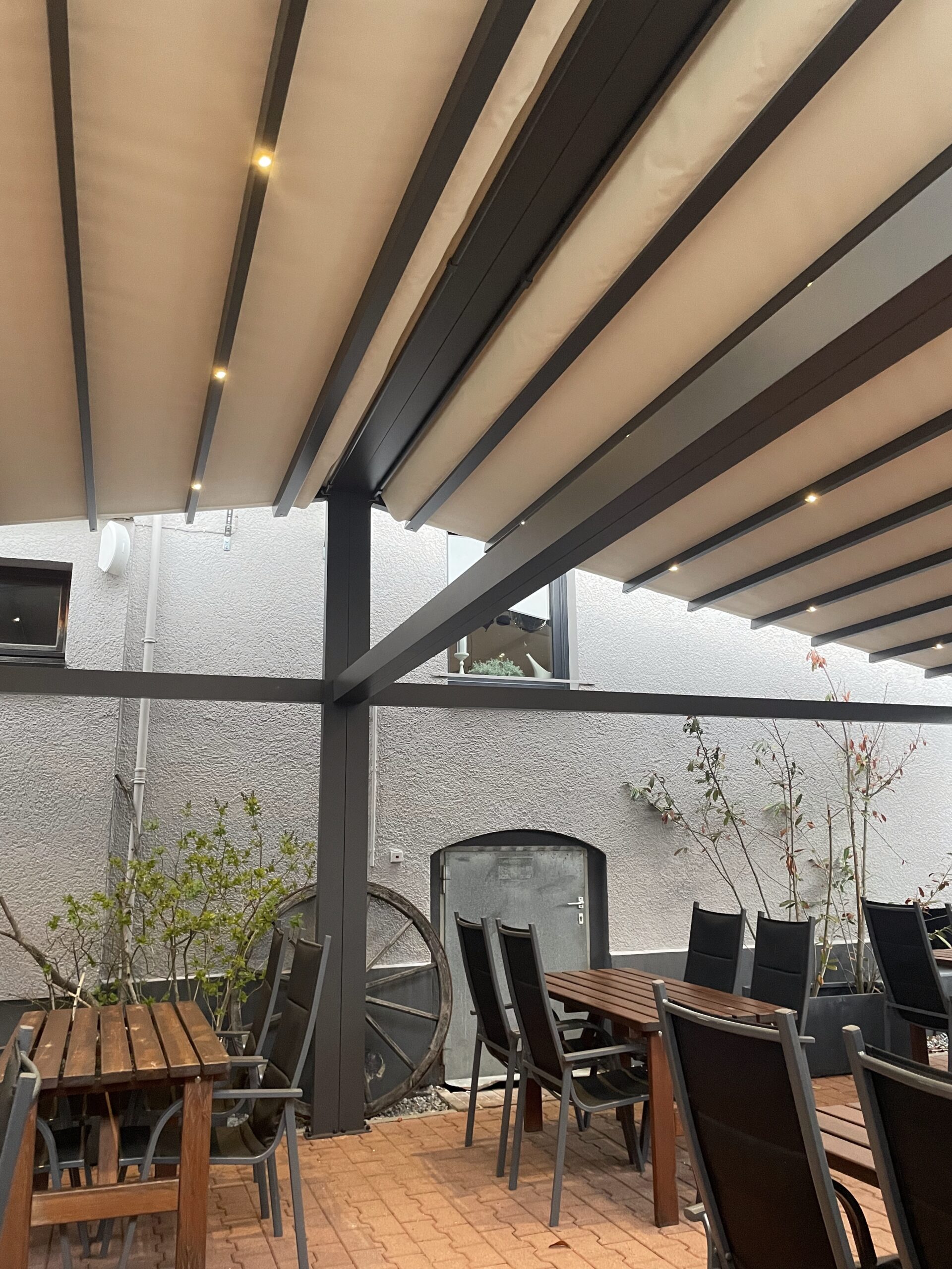 Unsere Pergolen aus Stoff, Plan oder Lamelle sind darauf ausgelegt, deinen Außenbereich bei jedem Wetter nutzbar zu machen. Dafür verbinden wir robuste Materialien, präzise Verarbeitung und moderne Technik zu Lösungen, die zuverlässigen Sonnen-, Regen- und Windschutz bieten. Jede Pergola wird individuell geplant und auf deine Anforderungen abgestimmt – von der flexiblen Dachöffnung über integrierte Entwässerungssysteme bis hin zu optionalen LED-Elementen, Beleuchtung oder Seitenelementen. So entsteht ein überdachter Bereich, der funktional, stabil und gleichzeitig ästhetisch ist.